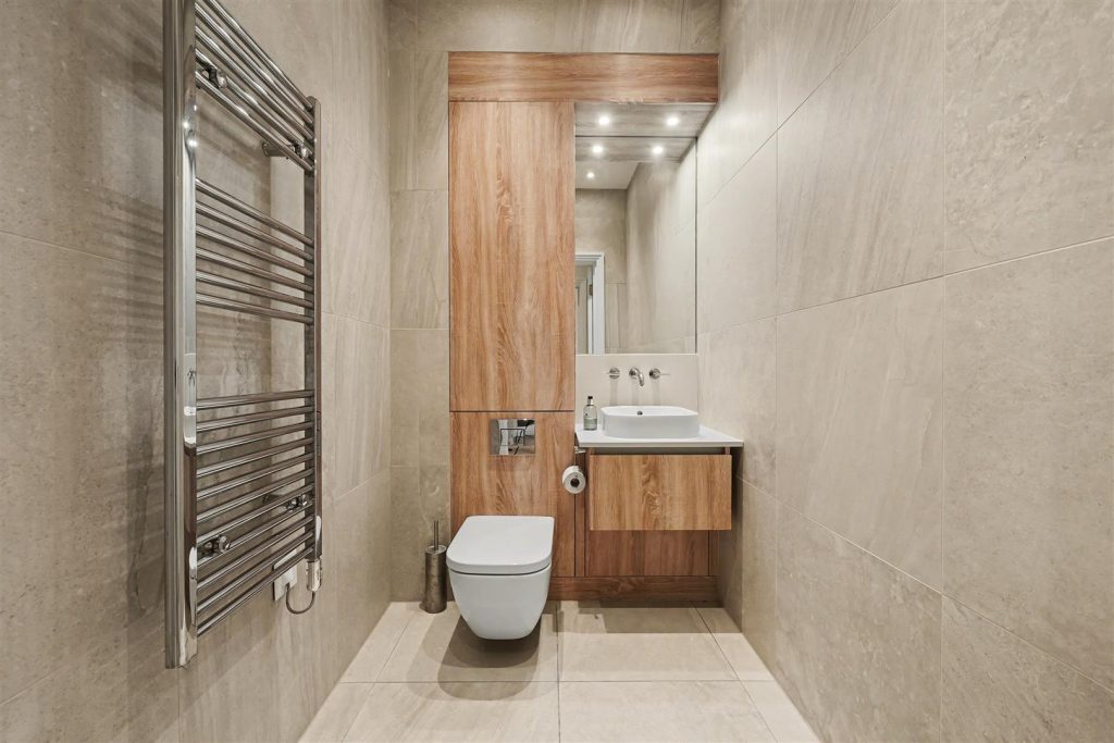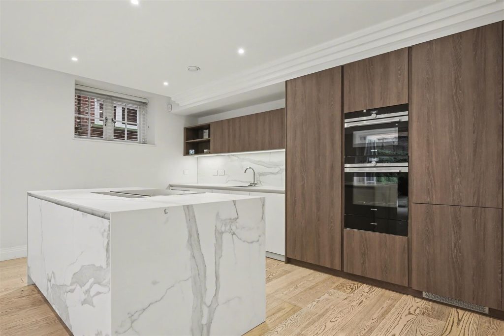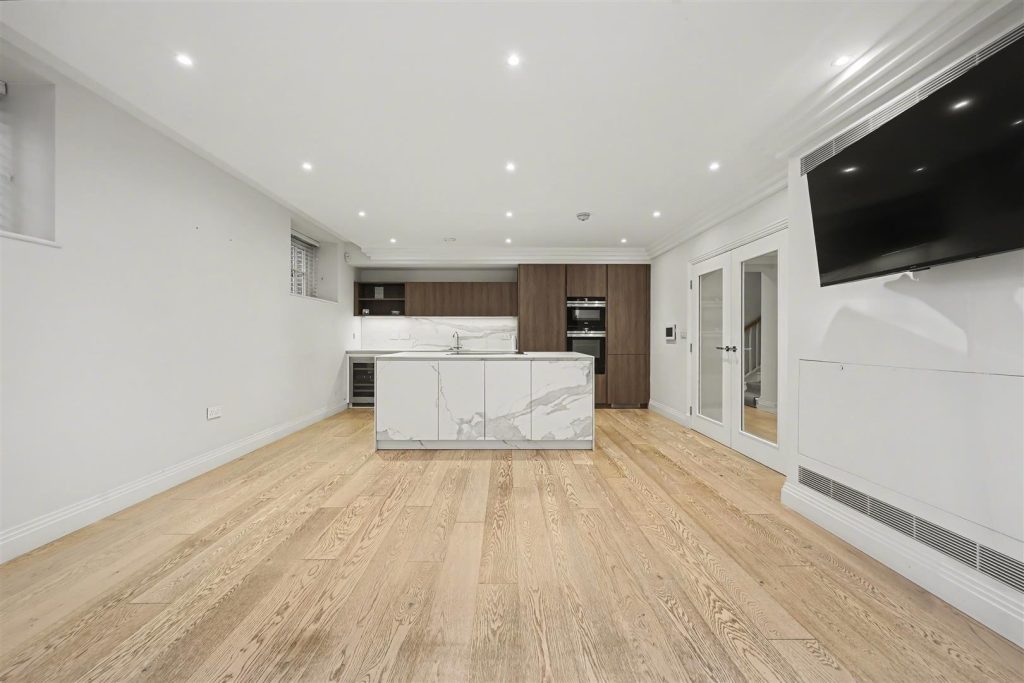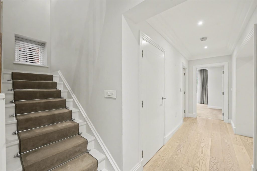 Finished to the highest specification throughout, the home offers an impressive reception room and a stylish study, complemented by a bespoke designer kitchen with a full suite of integrated appliances – ideal for both daily living and elegant entertaining. A guest cloakroom completes the principal living level.
