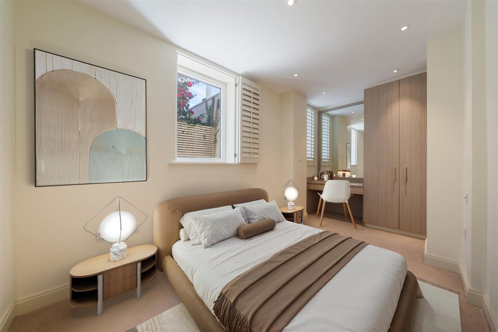 An impressive three double bedroom garden apartment forming part of an imposing white stucco period property located on one of Belsize Park’s most desirable streets. This outstanding apartment offers 1627 sq ft/ 151.2 sq m of accommodation and comprises, spacious reception room leading onto a private south facing 55” grass garden with patio, fully fitted kitchen/breakfast room with separate utility room, principal bedroom with fantastic storage and en-suite bathroom, two further double bedrooms (both with fitted storage), family bathroom and a separate study. Additional benefits include Lutron lighting system, double glazed windows and its own private entrance. N.B This property has been virtually staged