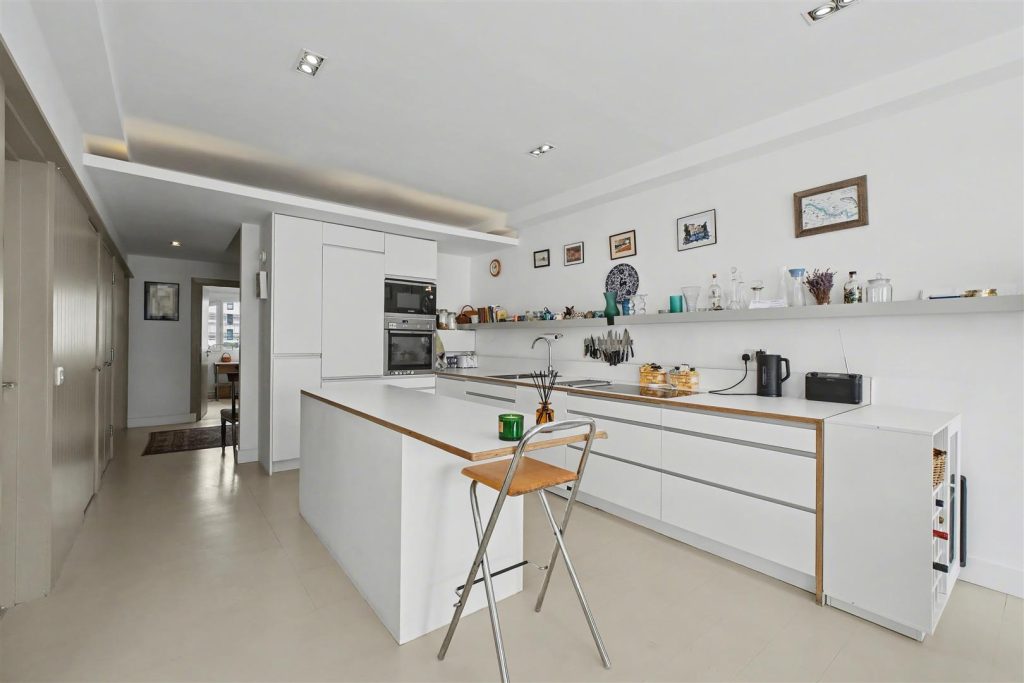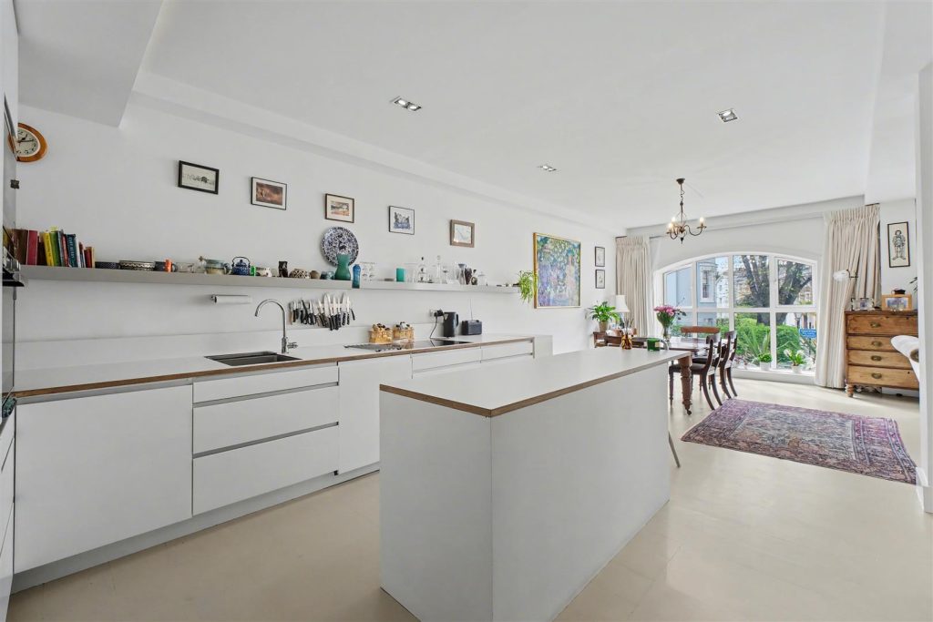 Positioned on the first floor, this beautifully curated home is defined by its abundance of natural light and impressive sense of space. The expansive open-plan kitchen, dining, and reception area is the true centrepiece, enhanced by floor-to-ceiling glazing that captures stunning south-westerly views along St Mark’s Crescent, creating an elegant and inviting atmosphere throughout the day.