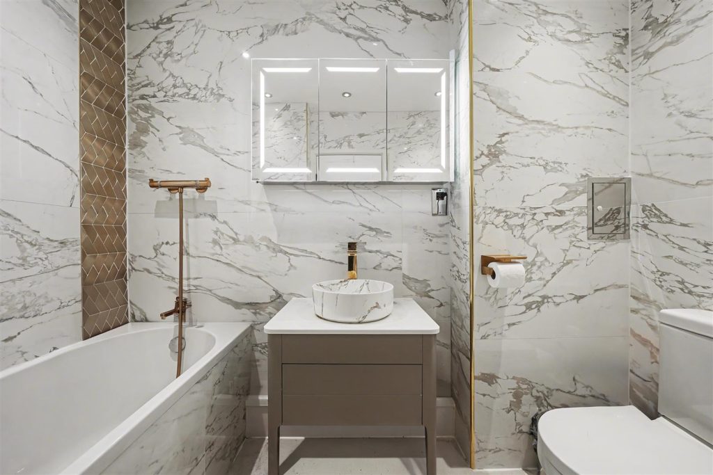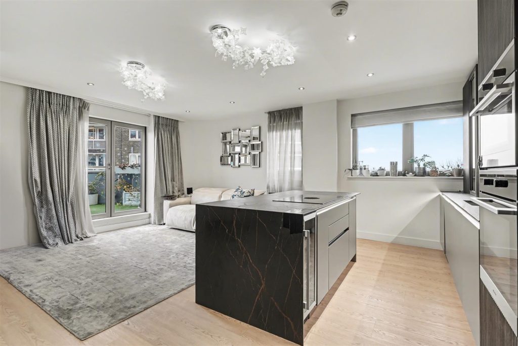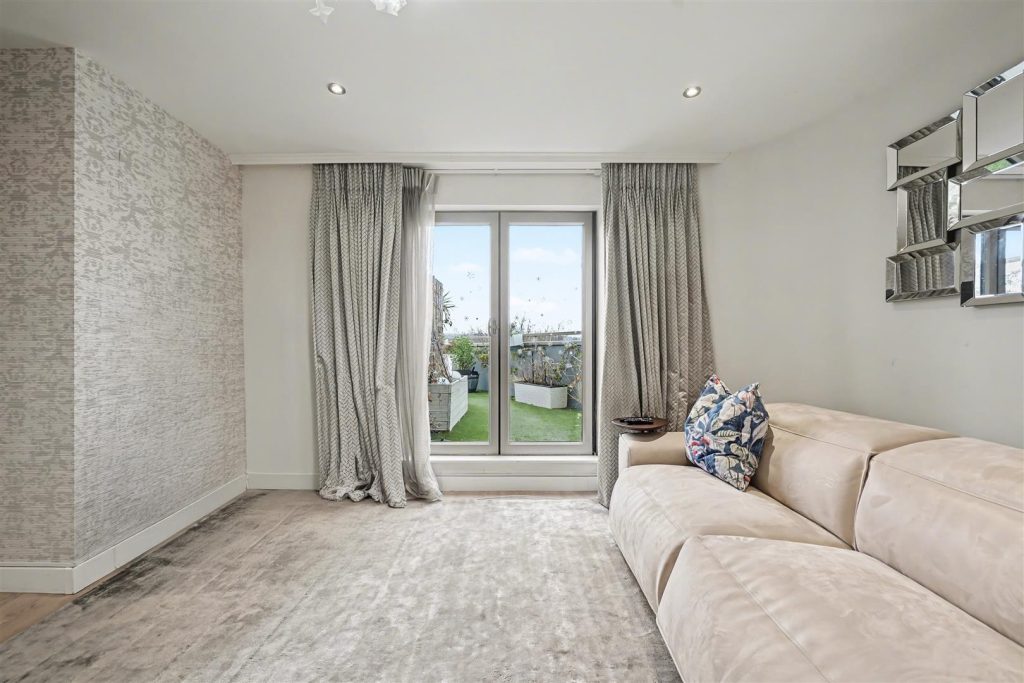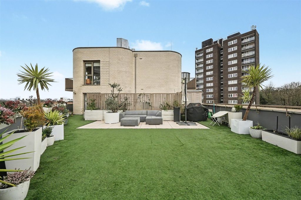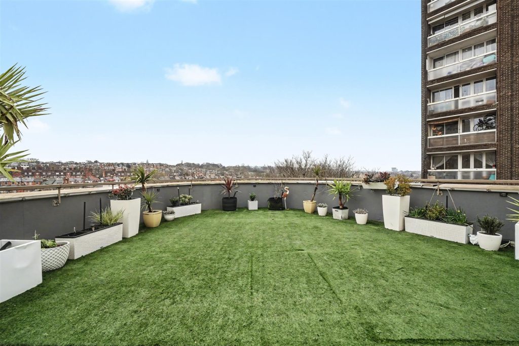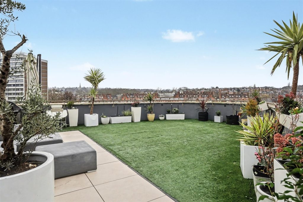 A spectacular three double bedroom, two bathroom apartment arranged over the fifth floor of a prestigious block (with lift) located in the centre of Belsize Park NW3. This outstanding property benefits from having the most superb 48” X 40” private wrap around roof terrace with far reaching views. As you enter the property you are greeted by a large hallway leading onto the reception room with bespoke German kitchen with Miele appliances and French doors onto the terrace, principal bedroom with custom built in storage and modern en-suite shower room, two further double bedrooms and a family bathroom. Additional benefits include wooden flooring and double glazed windows.