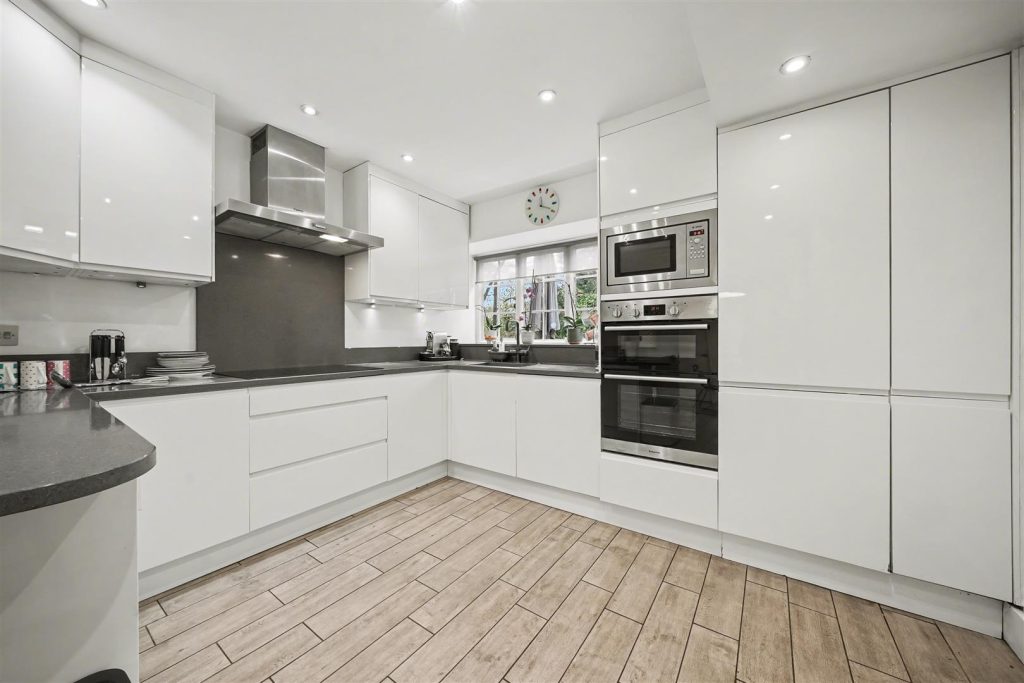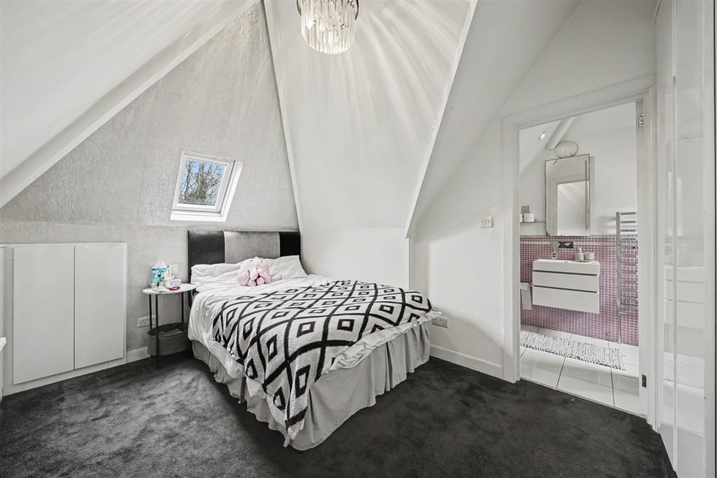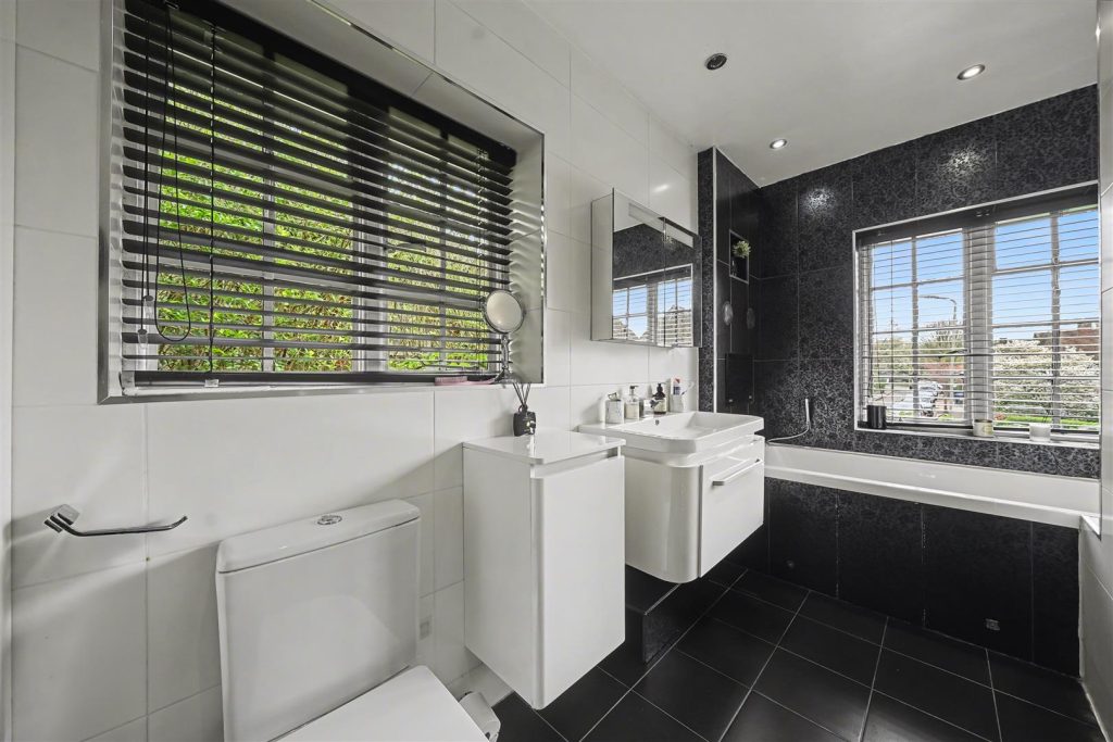 At the heart of the home lies a beautifully arranged eat-in kitchen with utility room and dining area with direct access to the garden enhancing the indoor-outdoor lifestyle. The property comprises four generously sized double bedrooms, all thoughtfully appointed, including two with sleek and well-finished en-suite bathrooms. A spacious and stylish family bathroom serves the remaining bedrooms, completing the accommodation.