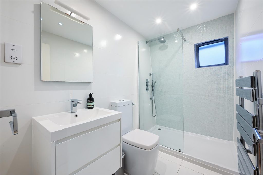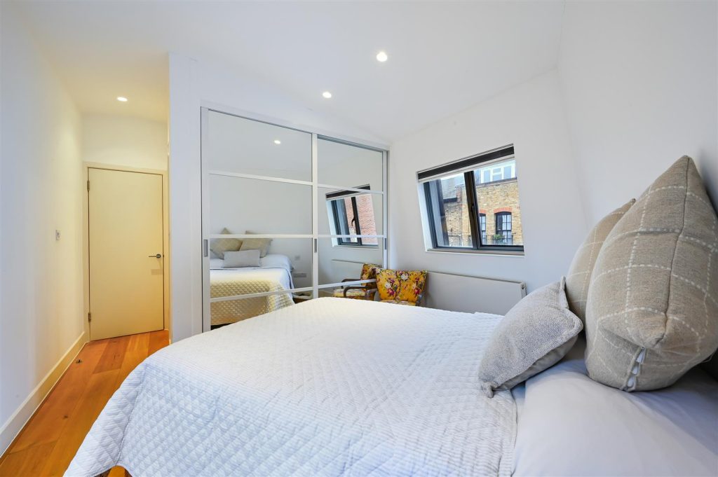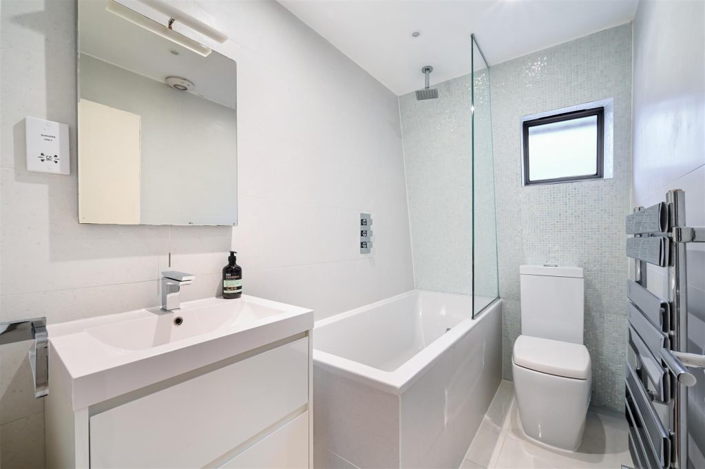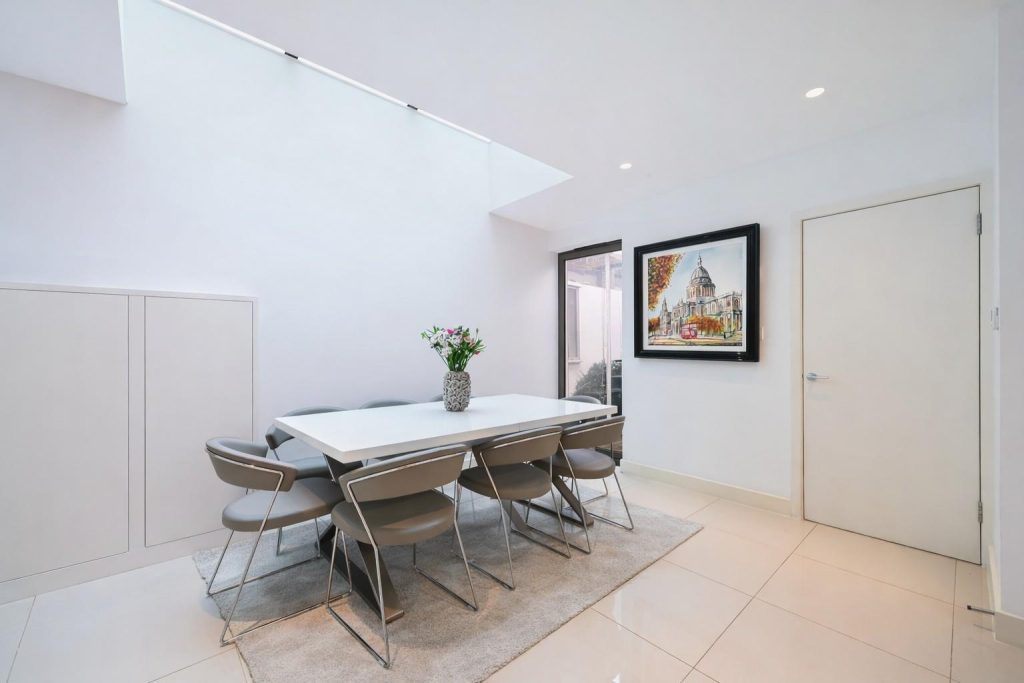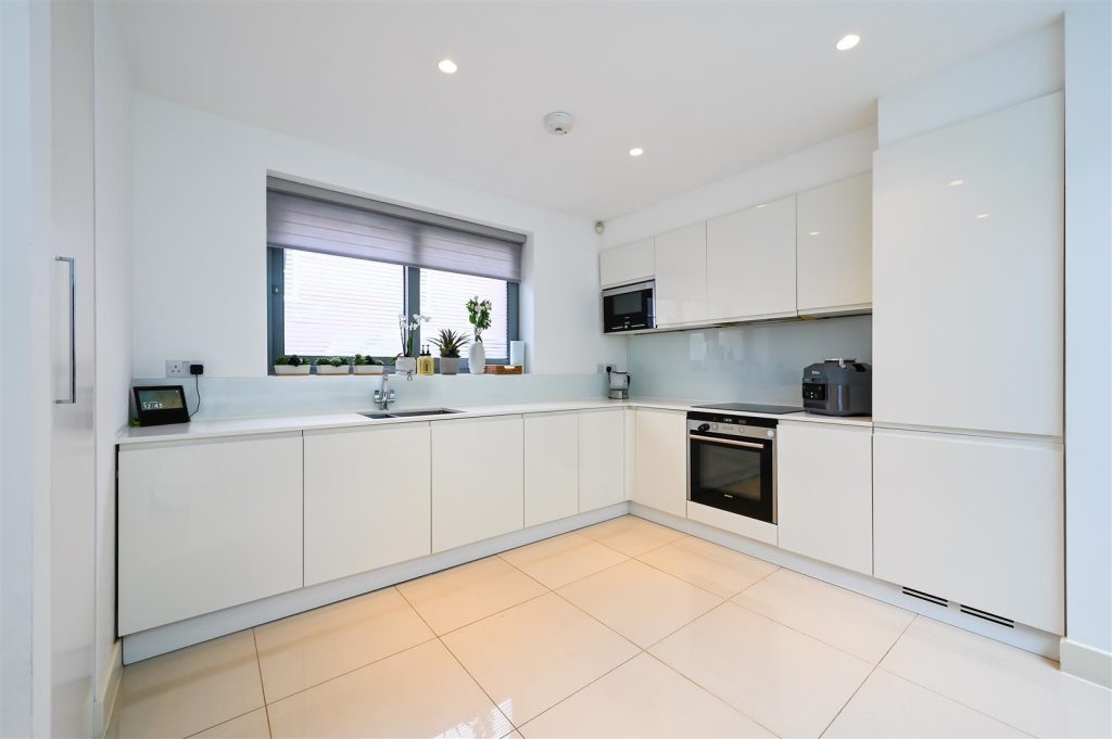 The upper floors host a superb principal bedroom with extensive bespoke built-in storage and en-suite shower room, a well-proportioned second double bedroom, a contemporary and a beautifully appointed family bathroom. The crowning feature is the magnificent private roof terrace, offering far-reaching views and an idyllic outdoor retreat.