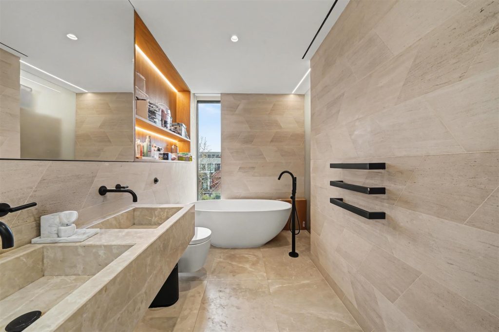The first floor offers three comfortable bedrooms, including a bedroom with en-suite facilities, together with a modern family bathroom. The top floor is dedicated to a spacious principal bedroom suite with dressing room, en-suite bathroom and access to a private roof terrace.